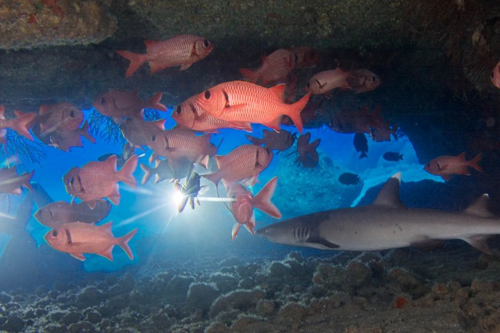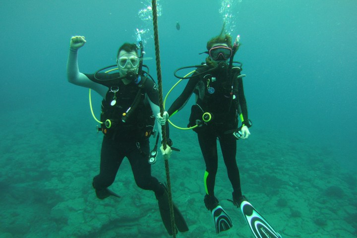 The maximum depth at this site is approximately 50 feet (Depending on the tide) with an average bottom time of 45 minutes, depending on air consumption. We offer both morning and afternoon dives. Mornings are typically very calm on the south shore of Kauai with trade winds possible to pick-up for the early afternoon, but because of the protected cove this site is in, diving either time should be relatively the same regarding the water conditions. The afternoon can be warmer while on the surface with the direct sun and no shade.